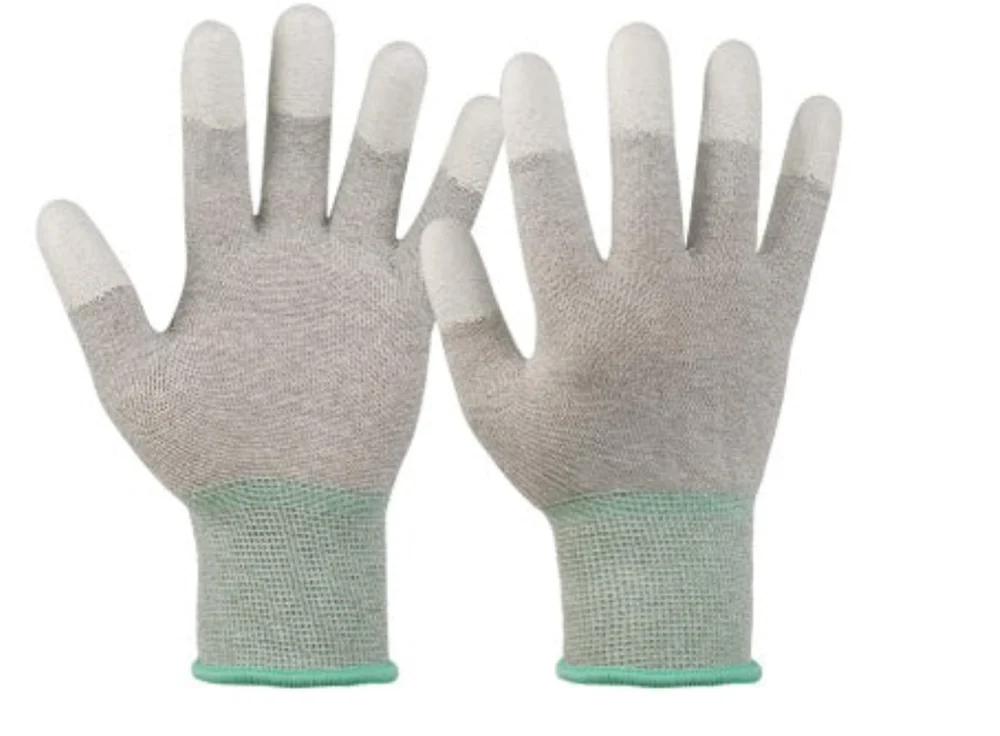 ESD finger tip coated gloves are designed for electronic and cleanroom environments where static charge can damage sensitive components. Made from a seamless knitted base, they feature polyurethane-coated fingertips that provide excellent grip, dexterity, and durability. The gloves are lightweight, breathable, and comfortable for long working hours.
