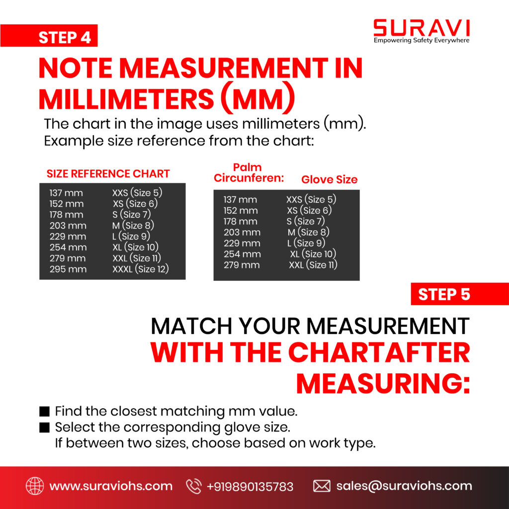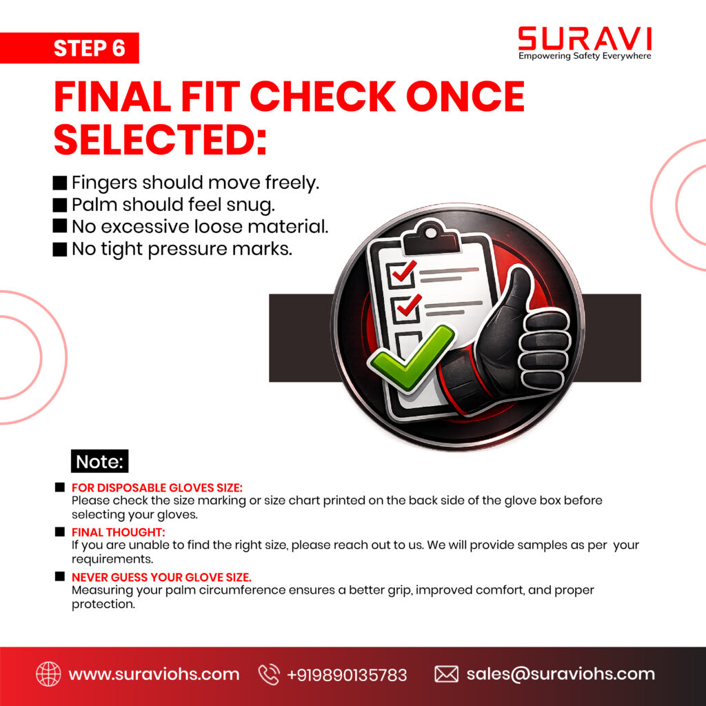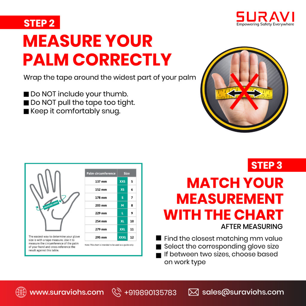 Choosing the correct glove size is important for comfort, grip, flexibility, and safety at work. Follow these simple steps to measure your hand correctly and select the right glove size.