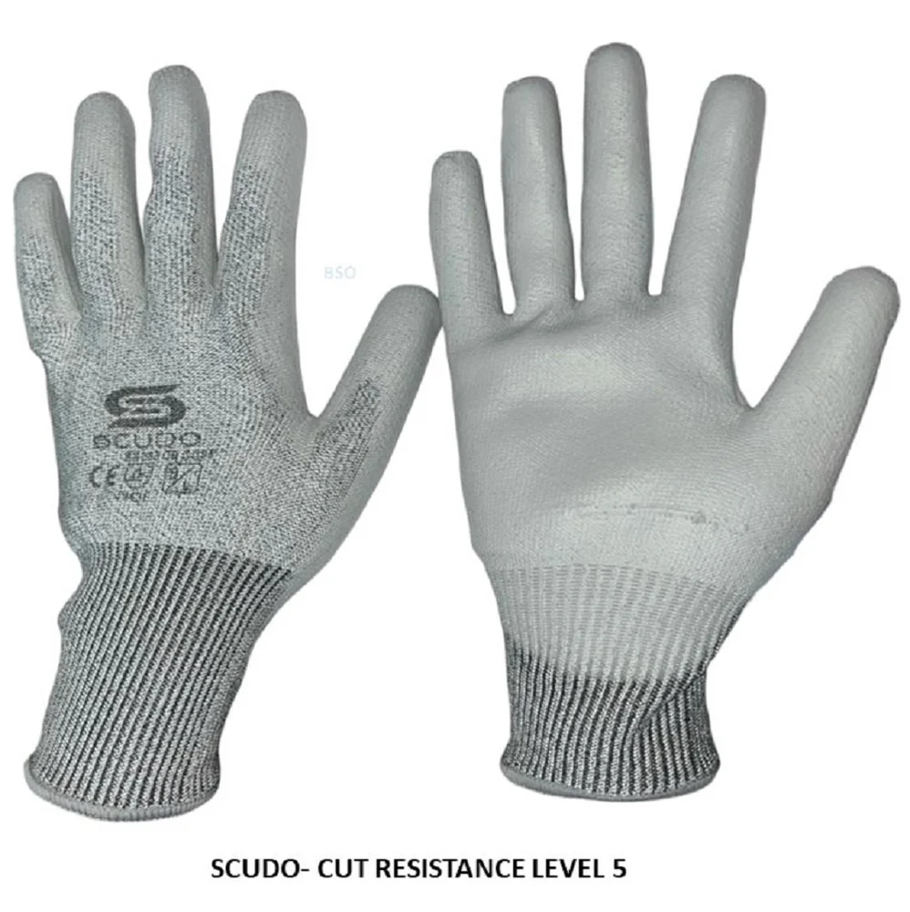 Cut-resistant level 5 gloves, often referred to as “Cut 5” gloves, offer the highest level of protection against cuts according to the EN 388 standard. These gloves are designed to withstand significant force and are commonly used in industries where there’s a high risk of injury from sharp objects.