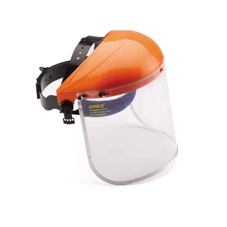 ABS material, flip up & ratchet adjustment head gear. Universal fit Comes with PVC or Polycarbonate face shield. Fits with Udyogi FC series face shields